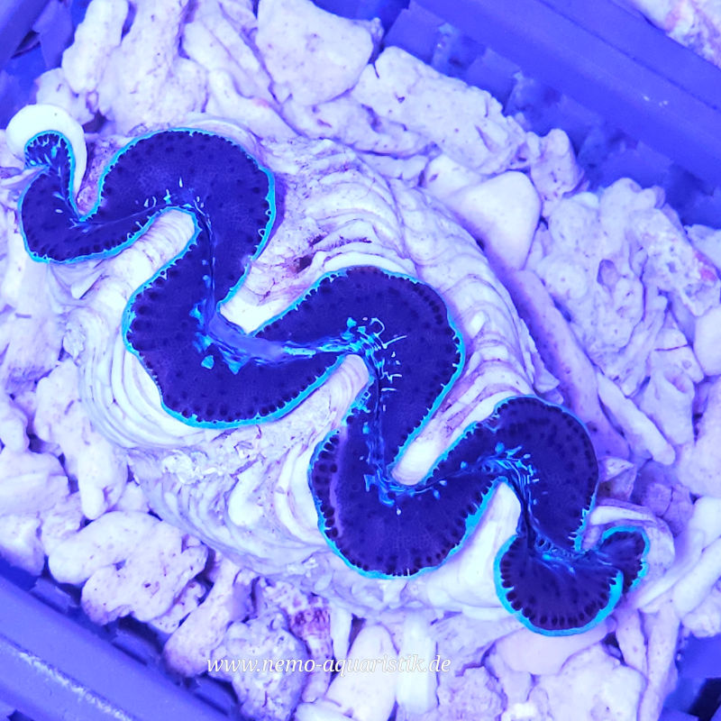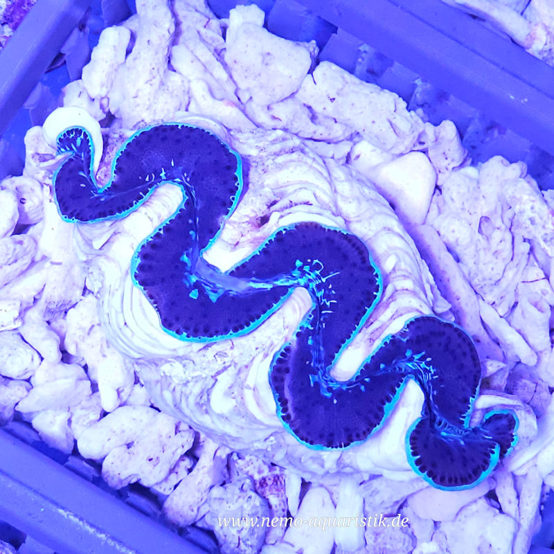 Die Tridacna gehört zur Familie der Riesenmuscheln. Sie ernährt sich über eingelagerte Mikroalgen in Sybiose und von Plankton und Staubfutter über Filtration. Nach dem Einsetzen verankert sie sich mit Hilfe ihrer Byssusfäden am Untergrund. Idealerweise sollte man die Muschel auf einen sogenannten Muschelhalter postieren. Dadurch kann man sie auch ohne Verletzungen an den Verankerungsfäden an einen anderen Ort befördern. Die Halterung kann einzeln aber auch in einer Gruppe stattfinden.Farbabweichungen sind möglich.